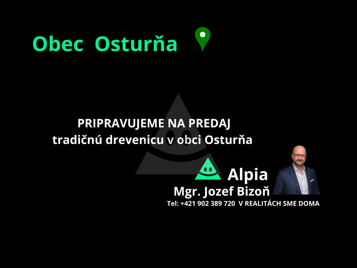 Reality Alpia ponúka v zastúpení na predaj nehnuteľnosť v obci Osturňa – tradičnú drevenicu s veľkým pozemkom, ktorá ponúka výnimočnú príležitosť na rekonštrukciu podľa vlastných predstáv.