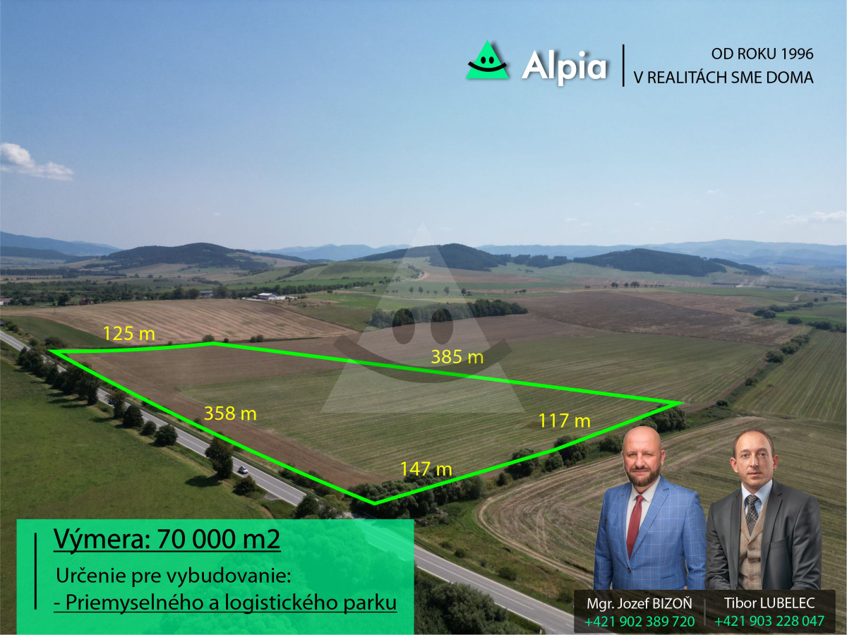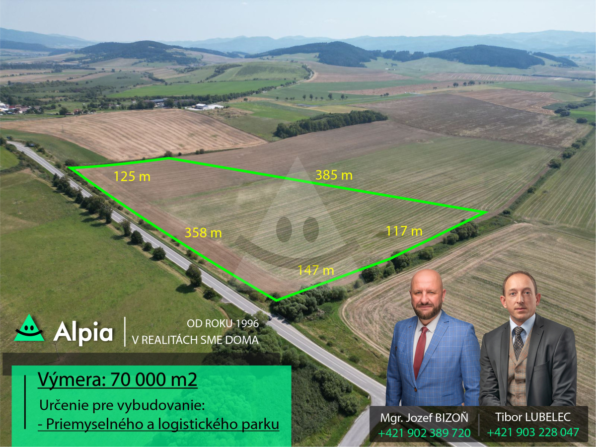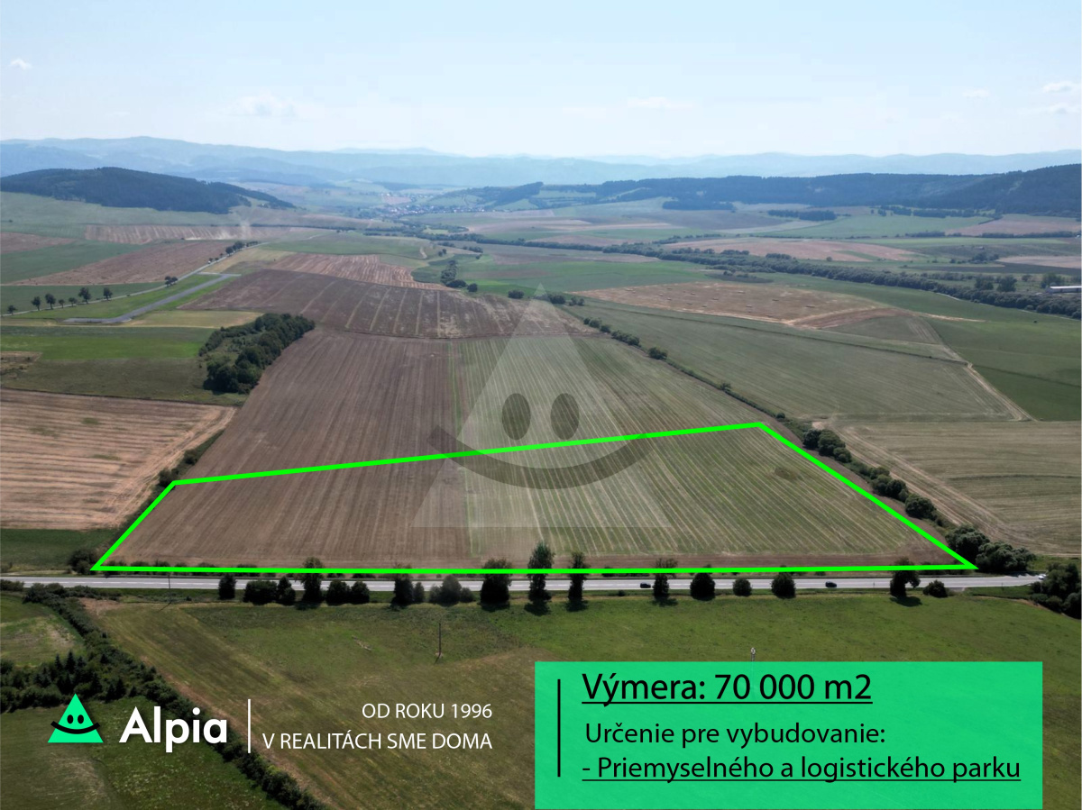 Pozemok len 3km od diaľnice D1 Levoča - Prešov s rozlohou 70 000 m2 určených na priemyselnú výstavbu.