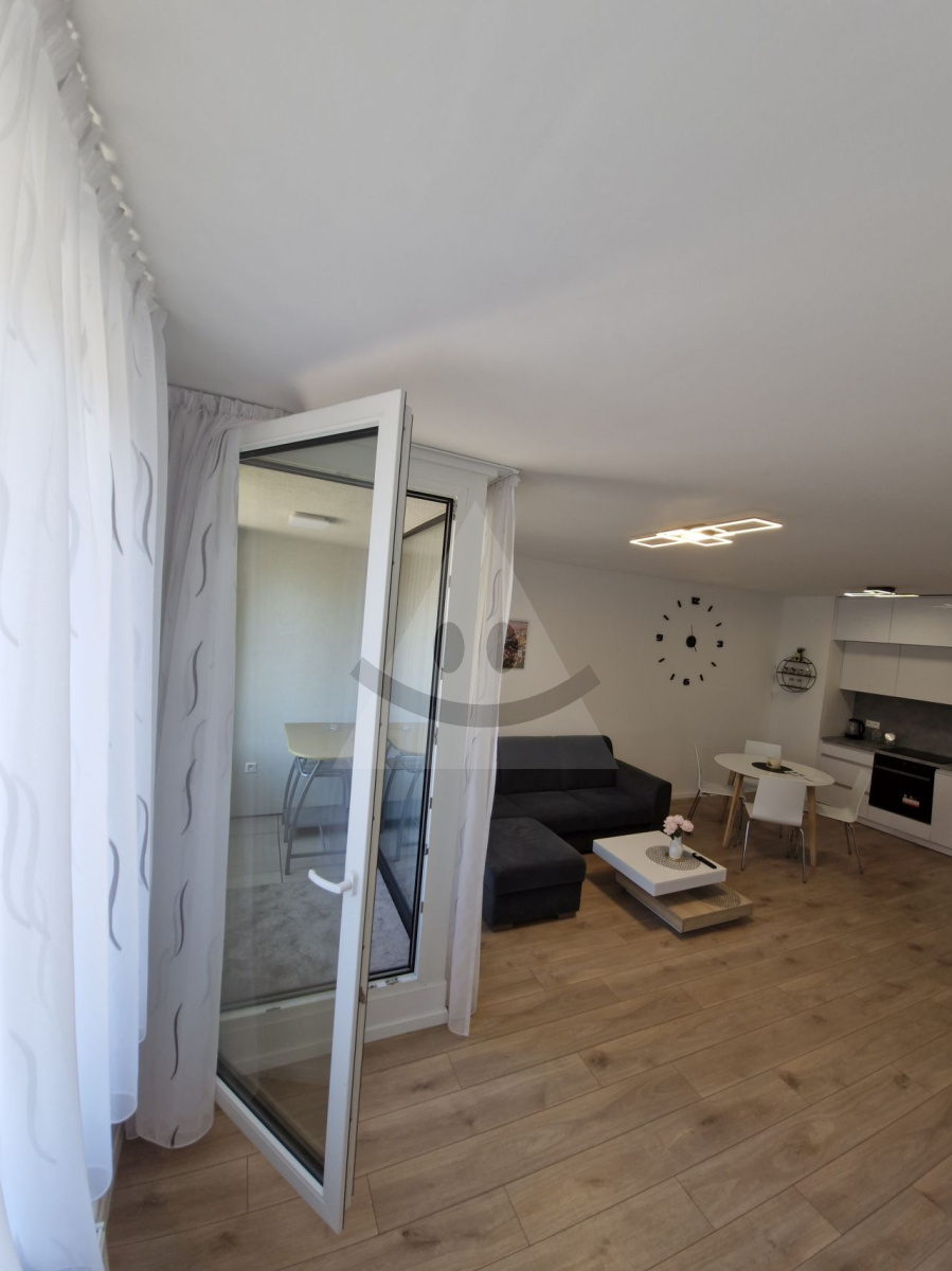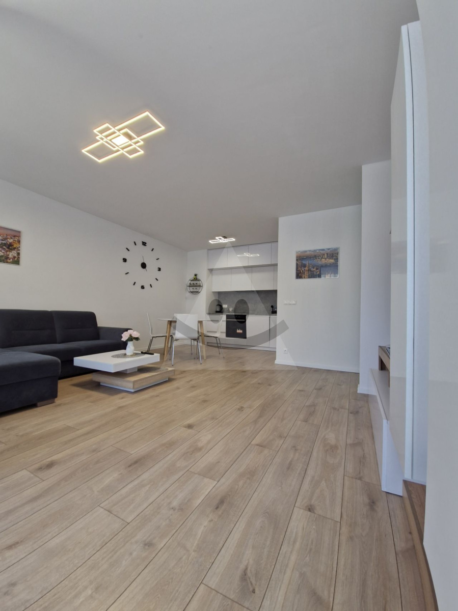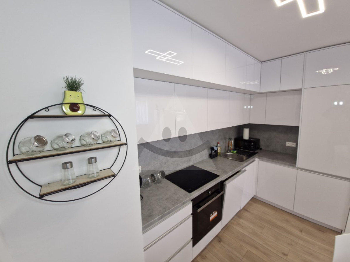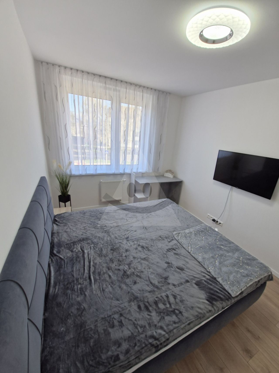 Byt je plne zariadený a pripravený na okamžité bývanie. Súčasťou vybavenia sú vstavané spotrebiče, nábytok a moderné prvky ako exteriérové elektrické rolety, ktoré zvyšujú komfort aj súkromie.